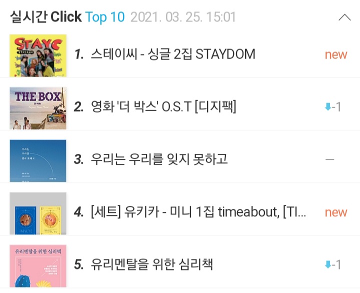 Aladin Real-Time Search Top 10 — 15:00 KST: #1. STAYC — STAYDOM [New]