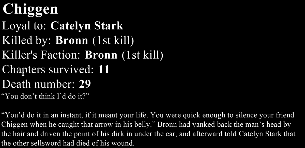Death number 29: Chiggen.