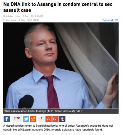 Forensics proved the women faked evidence. Gave police 'used' ripped condom with no DNA at all on it. Fact. http://www.smh.com.au/world/no-assange-dna-on-torn-condom--report-20120916-260vs.html …