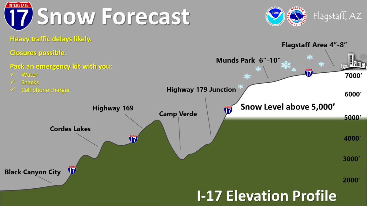 @NWSFlagstaff this morning! Be prepared if traveling north this weekend. 2019 has been a busy one for troopers in both northern and southern#az Do your part in making sure our highways are safe; slow down, don’t drive distracted and wear your seatbelt! pic.twitter.com/NWBBJy1zKe