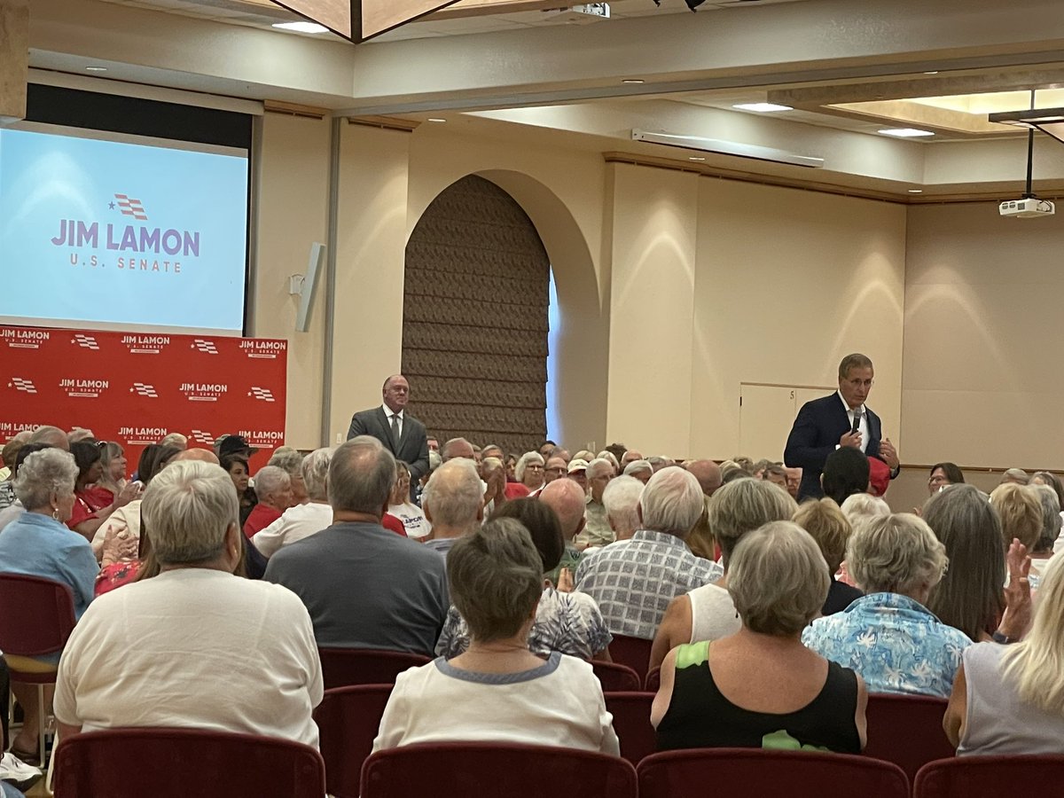 #AZSEN GOP candidate, hits rivals Blake Masters and Mark Brnovich for getting financial support from “big tech” and Calif law firms. “I want to be pure for us,” he tells a packed house. Lamon is appearing in Sun City West with Tom Homan. https://www.azcentral.com/story/news/politics/elections/2022/04/21/senate-candidate-jim-lamon-spreads-around-cash-in-republican-races/7375219001/ …pic.twitter.com/gXec1Q5ryv