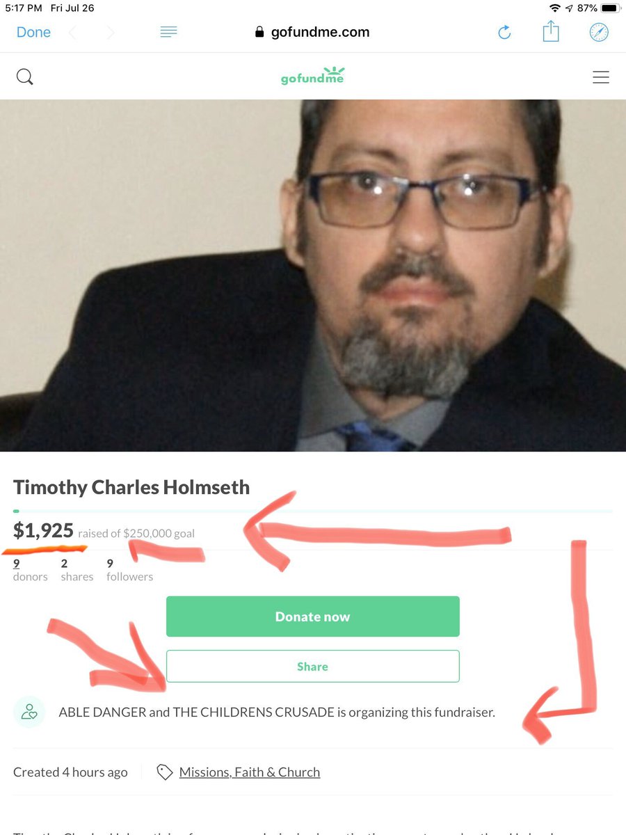 #TimothyHolmseth, If you had no knowledge of any donations ever made to the#ChildrensCrusade, than where did the $1,925.00 that you collected on behalf of the#abeldanger fundraiser go to?#FieldMcConnell https://twitter.com/MURTWITNESSONE/status/1232880195163631616 …pic.twitter.com/OS9ozUnRkm