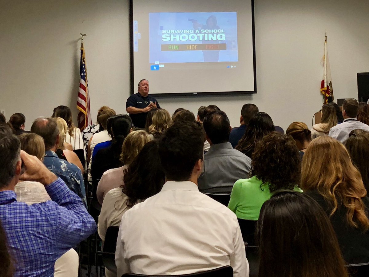@SantaAnaUSD Police Department for the#activeshooter response presentation.#RunHideFightpic.twitter.com/DfZgsFDv1W – at SAUSD Training Room