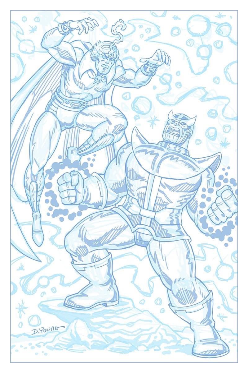#AdamWarlock vs#Thanos work in progress by#DarrylYoung. Cannot wait to see the finished piece!