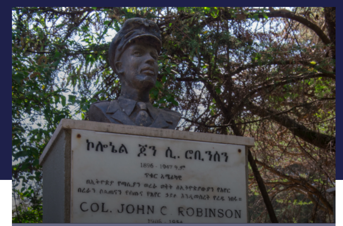#Ethiopian Air Force Col. John Charles Robinson overlooks the#AddisAbaba War Cemetery N Ethiopia. He is considered a national hero of Ethiopia who pioneered flight schools in the U.S. and#Ethiopia.#EthiopianUnity#GlobalUnity#Blackhistorymonth2022pic.twitter.com/Cst8XdKDLX