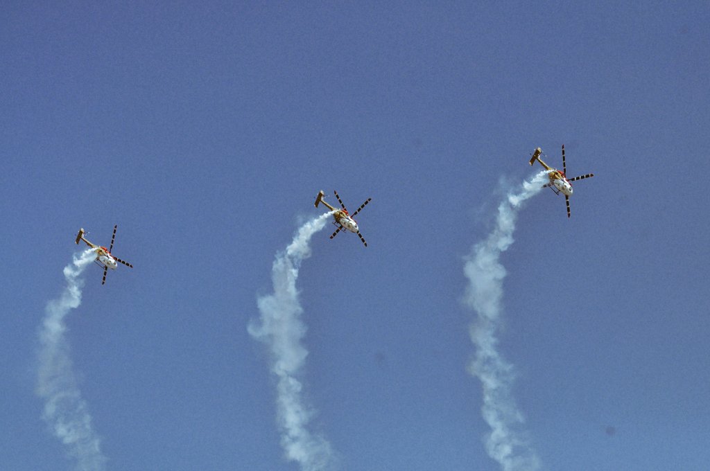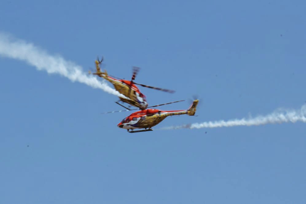 #AeroIndia2019 : The Sarang helicopter display team of IAF, is fascinating the audience at Aero India. The spectacular aerial manoeuvres leave the audience at the edge of their seats. Glimpses of the#Sarang at Yelahanka.pic.twitter.com/oWdczItlK5