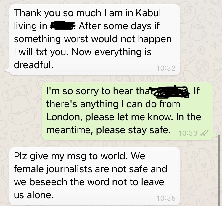 #Afghan female journalist who is now hiding out in Kabul in fear for her life. I hope the Western news organisations like the BBC, CNN, NYT, DW + wire services are doing all they can to keep their local staff safe during this frighteningly uncertain time pic.twitter.com/pIBTwD37Zb