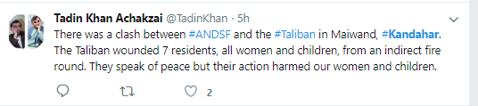 #Afghans want peace! "We are reassuring the#Kandahar people that we are fully ready to fight the enemies and are ready to negotiate peace with them too. We have called on the#Taliban to join the peace effort from Kandahar province." Governor Hyatt, Kandahar Provincial Governorpic.twitter.com/RqpsuA9wKq -
