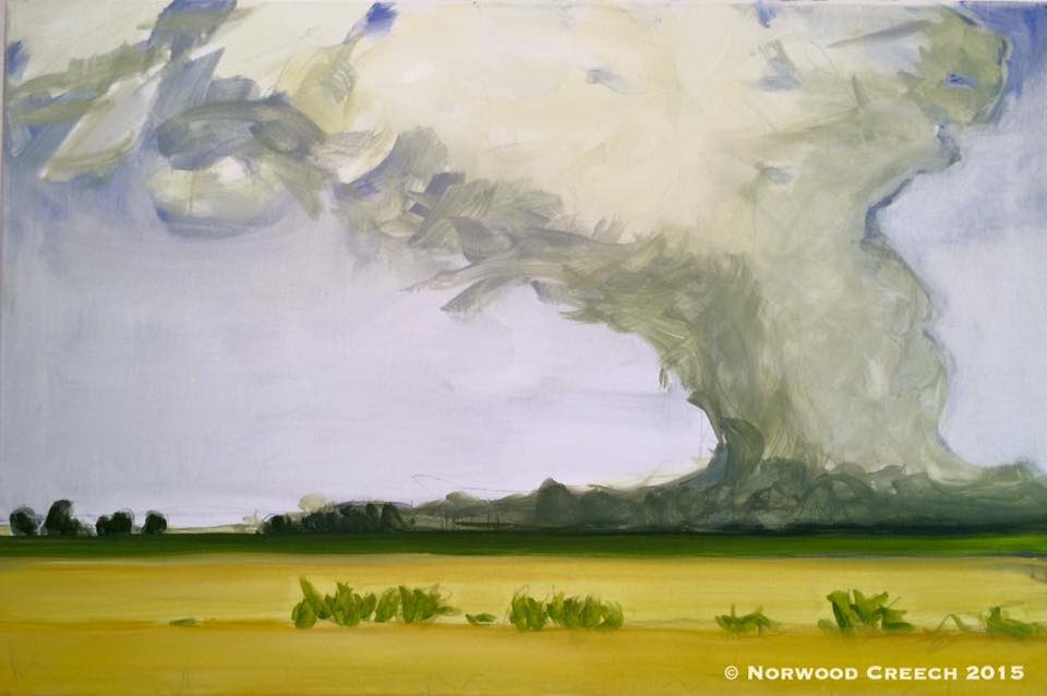 Smoke over a Rice Field/Burning Stubble towards Keiser Mississippi County, Arkansas, painted on location, graphite and oil on linen, 20" x 30" Norwood Creech 2015