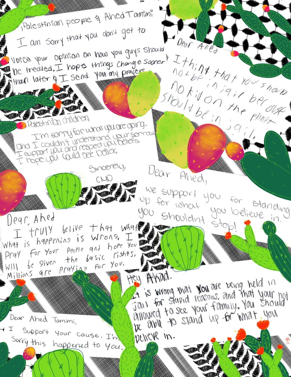 @JannaJihad1 we have letter addressed to your cousin#AhedTamimi. We also made them in beautiful collages! Do you have an address for us to mail them? We mail them to HaSharon Prison but they were sent back. We'd like to get these to Ahed. Thank you! pic.twitter.com/jlQbWrDfTI