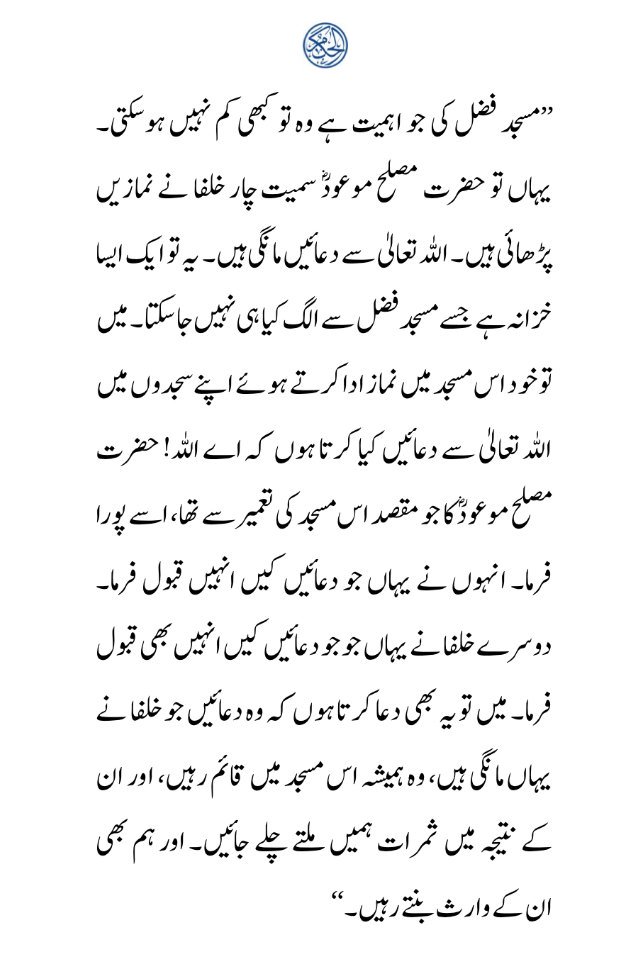 "The significance & importance of Fazl Mosque can never diminish" Hazrat