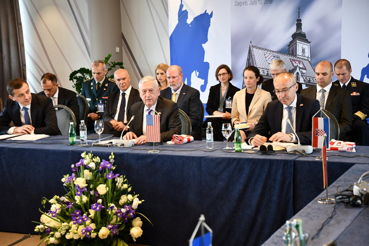 @DeptofDefense Secretary of Defense James Mattis speaks at the U.S.-Adriatic Charter Defense Ministers meeting in Zagreb.@ChiefPentSpox#Albania#BosniaandHerzegovina#Croatia#Macedonia#Montenegro#U.S.-AdriaticCharterpic.twitter.com/orJJsAltOM