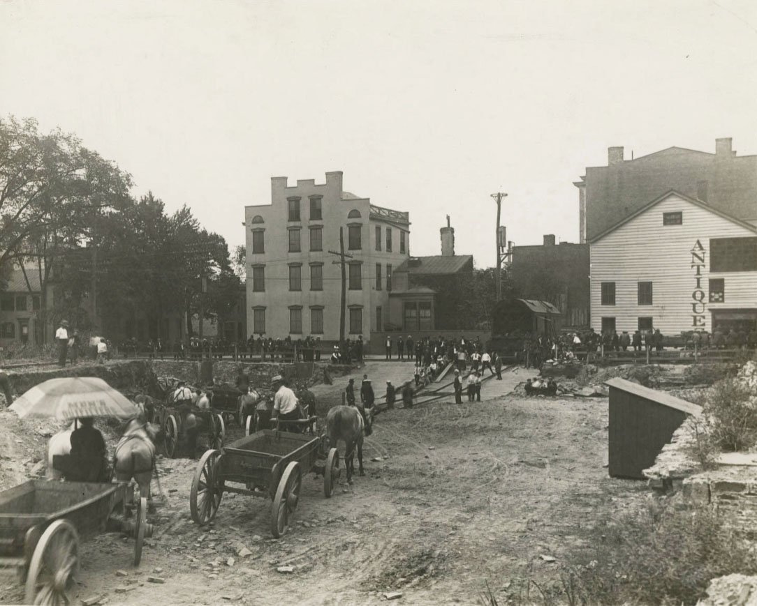 Construction of the NYS Education Building circa 1908. It's either a lunch break or every foreman in the state showed up on the same day.