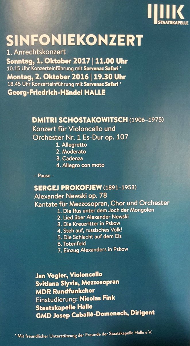 #Sinfoniekonzert-Saison der#StaatskapelleHalle beginnt mit#Schostakowitsch|s Konzert für Cello und#Prokofjew|s#AlexanderNewski! pic.twitter.com/FeGnbJ0Sya