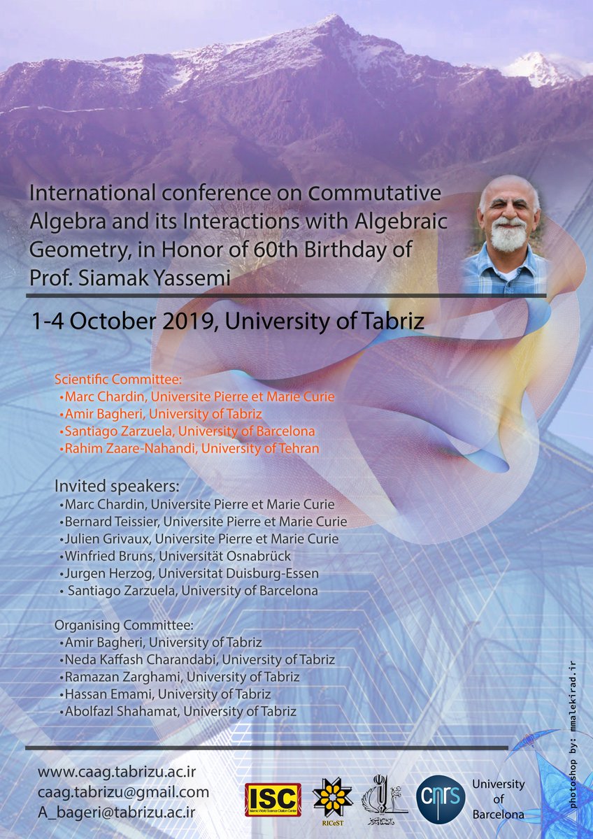 International conference on commutative Algebra and its Interactions with Algebraic Geometry, in Honor of 60th Birthday of Prof. Siamak Yassemi 1-4 October 2019, University of Tabriz, Marand Technical College, Iran. http://caag.tabrizu.ac.ir/en