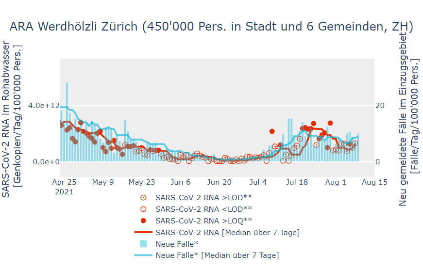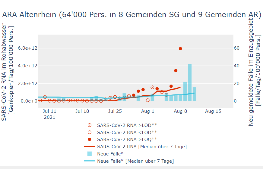 #sarscov2 in#wastewater rising very rapidly in#altenrhein,#zurich staying steady. All data here: https://sensors-eawag.ch/sars/overview.html …. We switched to#Geneva on Aug 1, so#Lausanne data not updating (will post#Geneva soon).pic.twitter.com/ZKCCMkl4W7