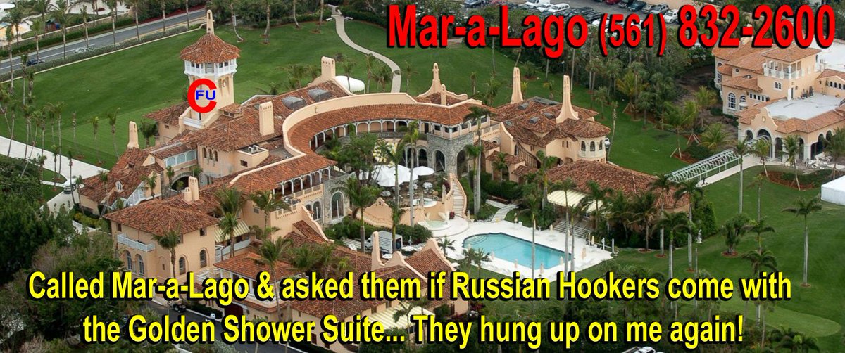 Called Mar-a-Lago (561) 832-2600 asked for the GoldenShower Suite... They hung up on me...