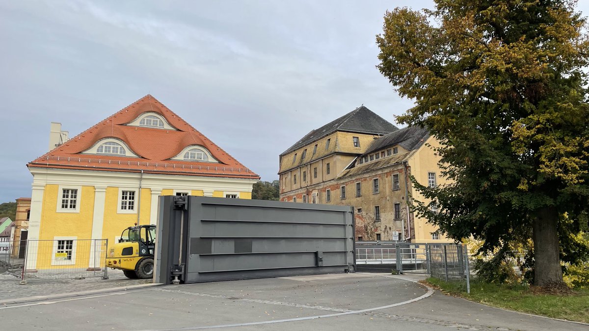 #Grimma in der#Altstadt und habe mir die#Hochwasser Schutztore angeschaut. Schon sehr mächtig. An der Hauswand konnte man die#hochwasserstände der vergangenen Jahre sehen. pic.twitter.com/bz1EjgQ9bt