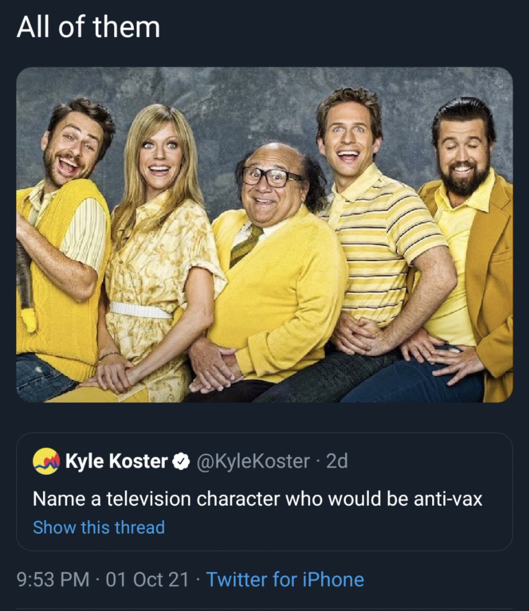 #alwayssunny https://twitter.com/CharlieDayQuote/status/1445589366307393540 …