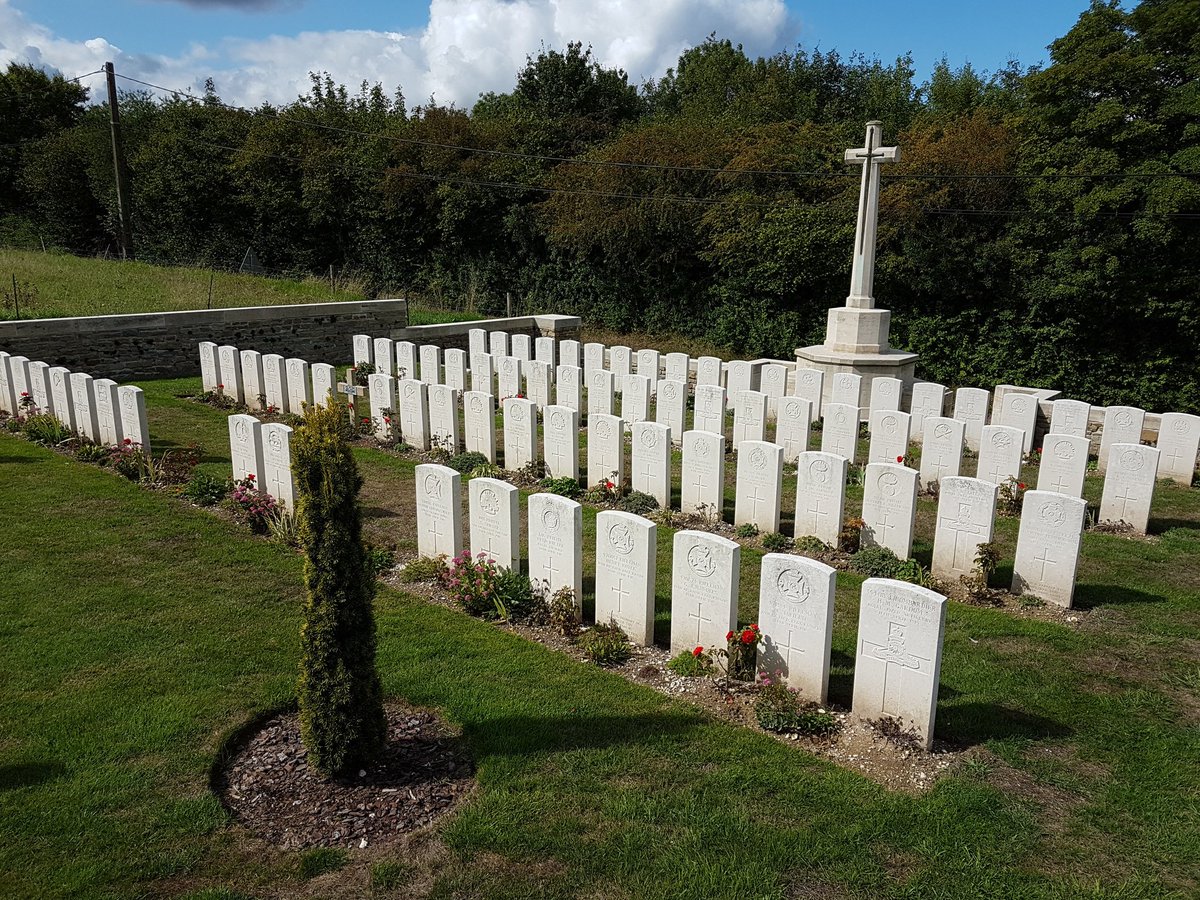 #PicOfTheDay Well off the beaten track lies#LongpreLesCorpsSaints#British@CWGC#Cemetery#Somme#France. Just 78 men now stand easy here after falling in the battle of#Amiens in 1918, including#Rifleman Skinner#PostOfficeRifles whos family had recently visited.@POR_WW1pic.twitter.com/XwAV04Snuj