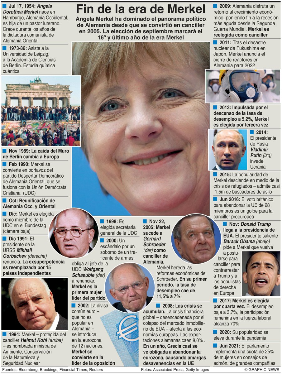 #Infografía#AngelaMerkel ha dominado el panorama político de#Alemania desde que se convirtió en canciller en 2005. La elección de septiembre marcará el 16º y último año de la era Merkel. Vía Graphic Newspic.twitter.com/DiL2R1jfvj