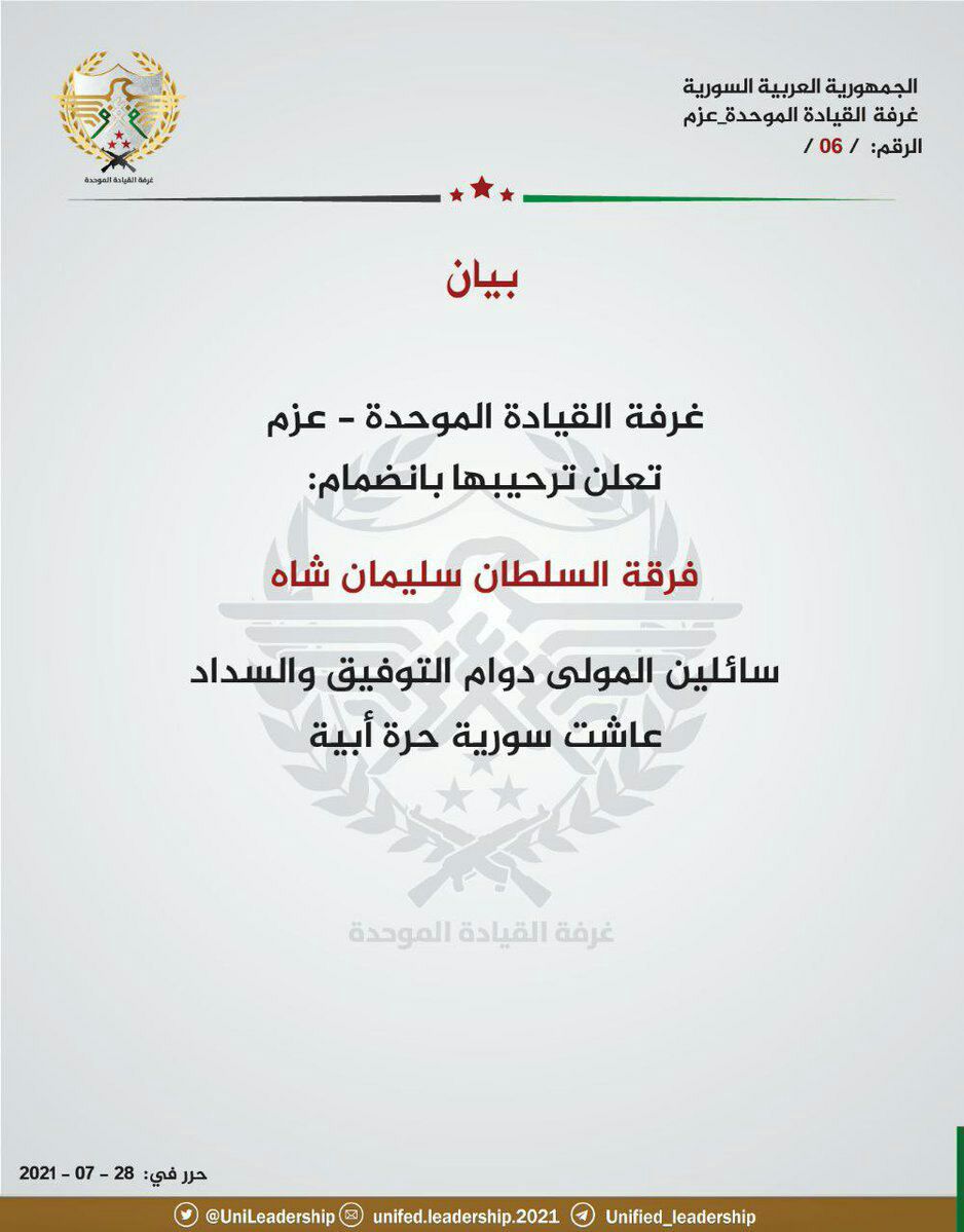 Al-Hamzeh division, Sluyman Shah (Abu Amshah faction) and Soqur al-Shamal legion just defected from (‘Azem). Guess who is closely watching this factionalism?