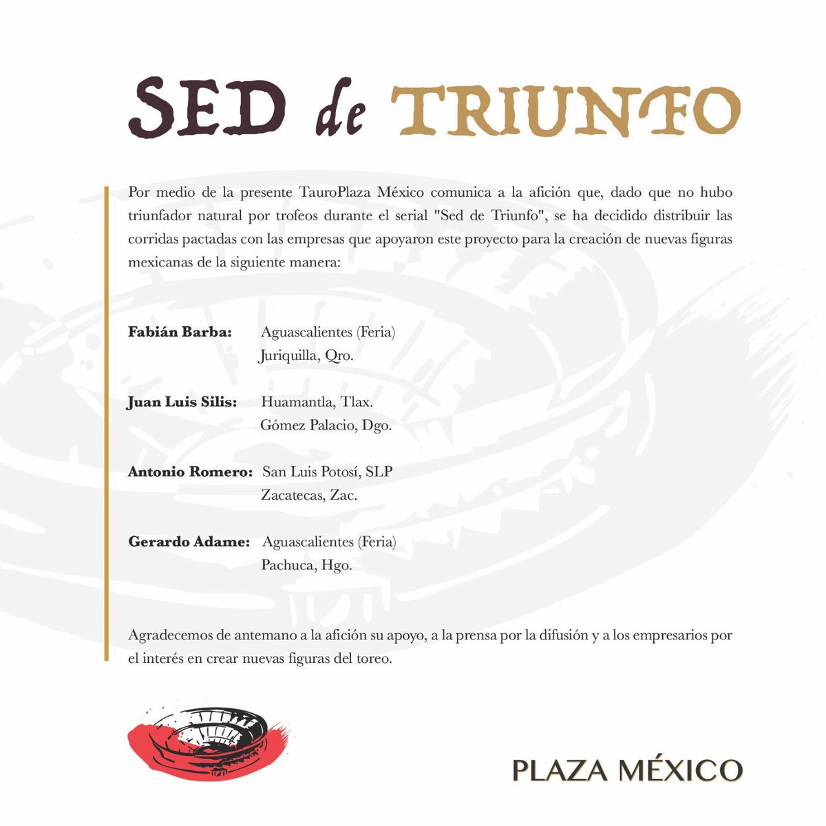 @LaPlazaMexico anuncia el Premio compartido a los triunfadores#SeddeTriunfo@FABIANBARBA@33SILIS#AntonioRomero@gerardoadame_@mzulaicapic.twitter.com/BbmXyZIPTq