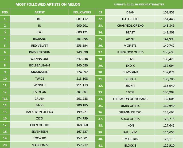 Apink is also the 25th overall most followed artist on melon