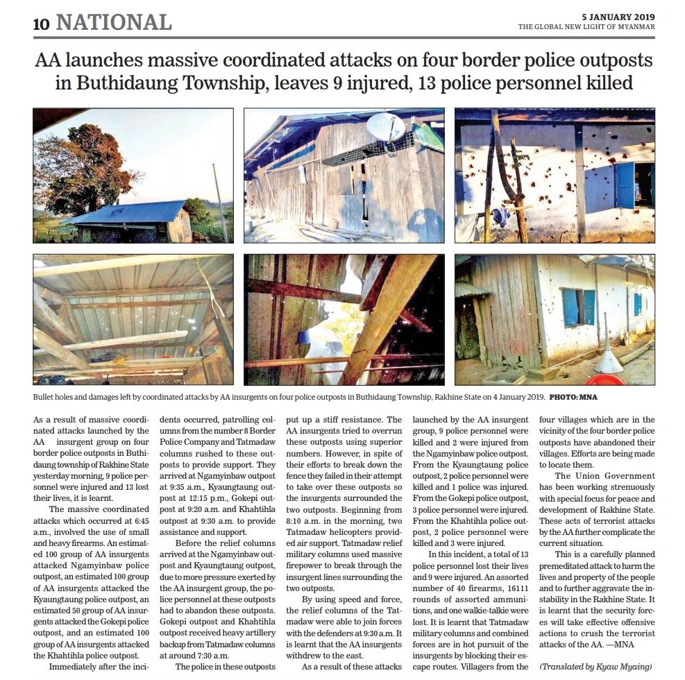 #ArakanArmy that killed 13 security personnel including a police major and several injured in a series of coordinated attacks in northern Rakhine State on 4 Jan 2019. Now the question and curious what the#Myanmar will do?pic.twitter.com/aTppJxyIN1