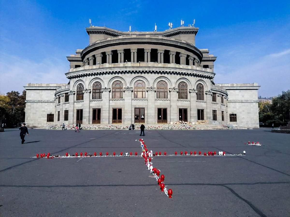 #Arménie- A#Erevan, les#Arméniens déposent des bougies et des fleurs en mémoire des défunts de la guerre.