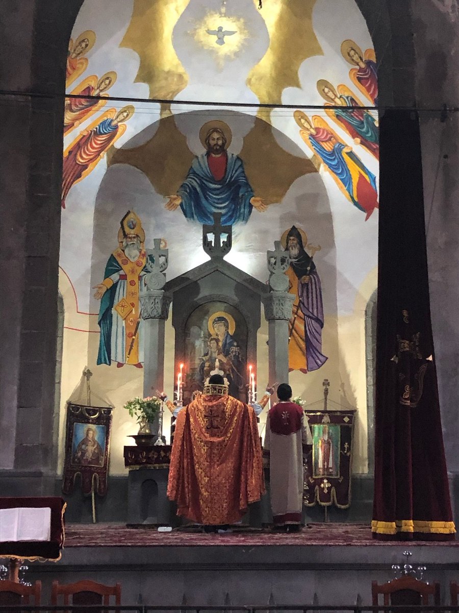 #Arménie - Ce dimanche, les volontaires assistent à la messe à l'église de Saint-Grégoire-l'illuminateur.