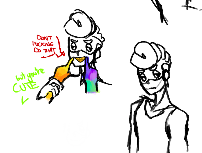 actually what if I just posted all of my ocxcanon content that I drew today right here. (she/he/they for both characters lol)