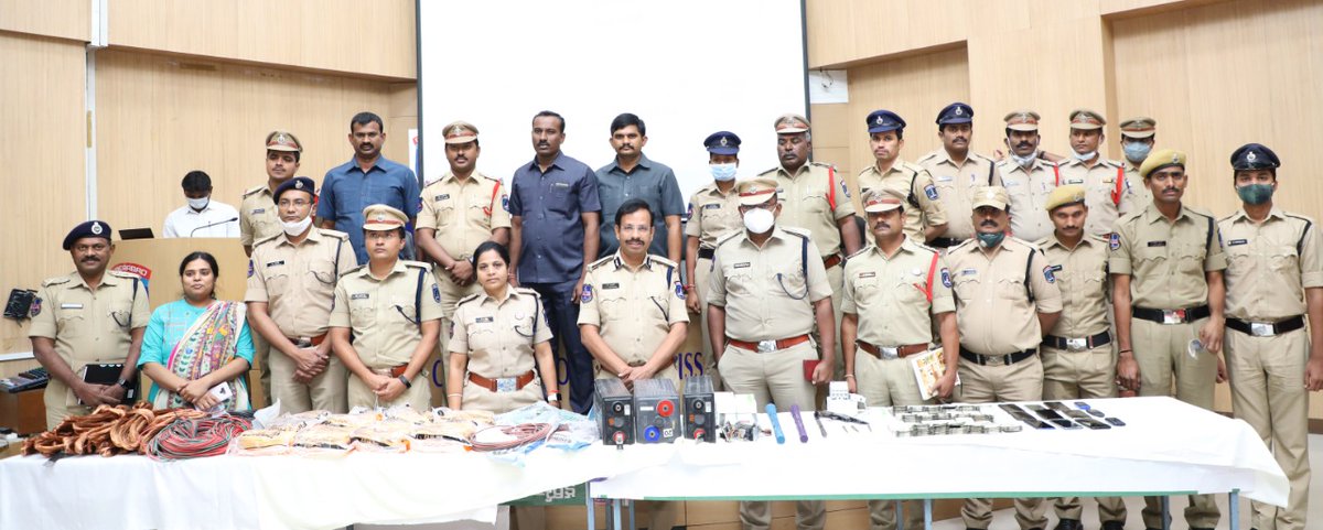 #CyberabadPolice credible information Balanagar, Shamshabad SOT Police nabbed 9 dacoits who committed series of#dacoities & Property#offences in the limits of Cyb Commissionerate recovery of Rs. 55 lakhs worth stolen goods and firearm.2Receivers of the property also#arrested. pic.twitter.com/U3UP3qFqsz
