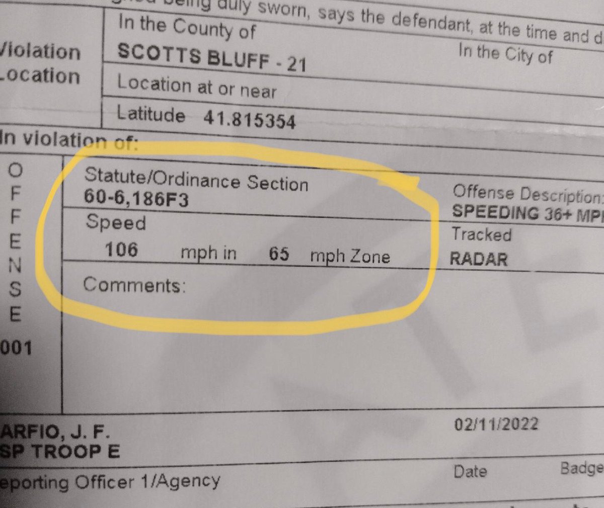 If you travel 106MPH in a 65MPH zone, you might meet people like us.... this motorist met TRP Garfio #483.