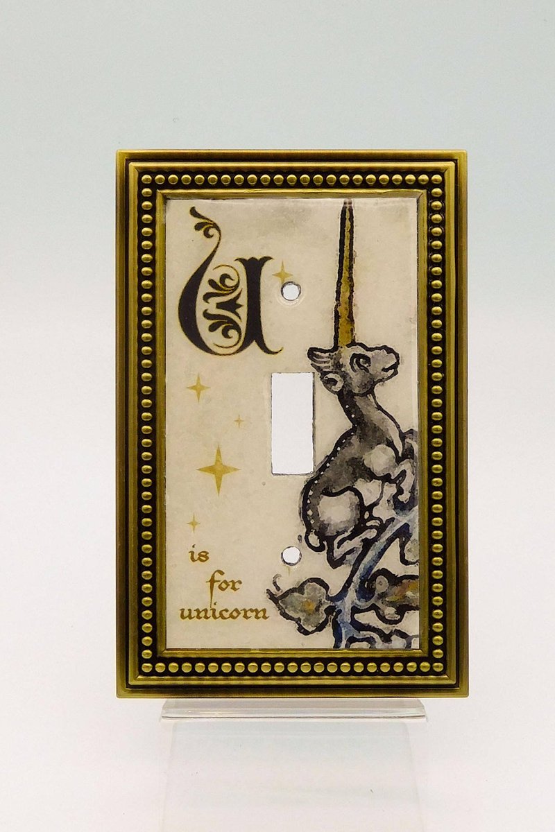 Baby Unicorn Light Switch Cover, Little Unicorn Switchplate, Unicorn Alphabet Light Switch, Unicorn Nursery Decor, Magical Child Room Decor https://etsy.me/2qned0v