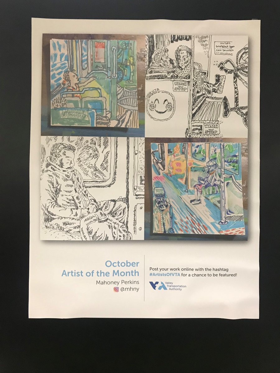 #ArtistOfTheMonth Mahoney was featured in our transit newsletter, on light rail station posters, and on interior ads on all our trains – check it out! Remember to tag your work#ArtistsOfVTA if you’re interested in an opportunity like this! pic.twitter.com/mW07fMrGes
