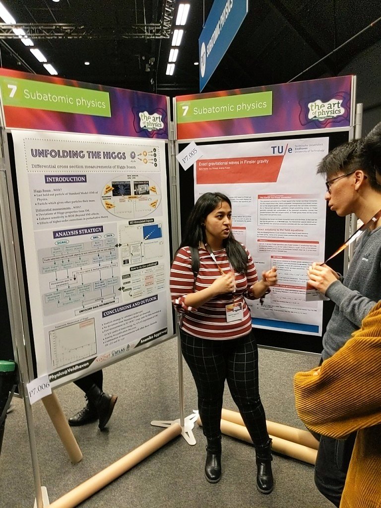 @ATLASexperiment presenters today, Anamika at her poster on "unfolding the Higgs", and Terry presenting "lepton flavor violation in Z boson decays". (There were more ATLAS presenters, but I didn't manage to get photos.)#DutchPhysics#ArtOfPhysics pic.twitter.com/j1LyvLoh3x