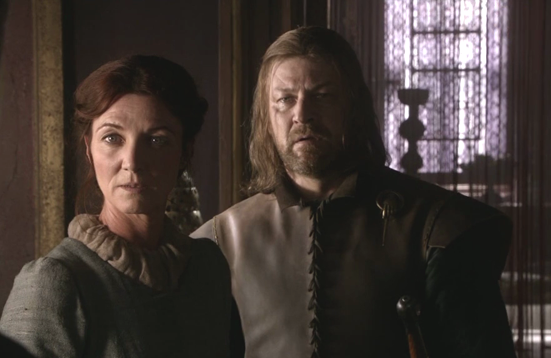 Catelyn y Ned Stark viendo a su retoño