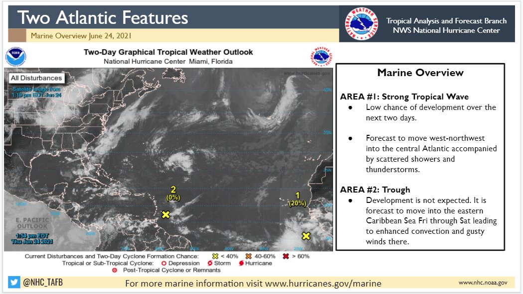 #Hurricane Center is watching a#TropicalWave moving through the#Atlantic giving it a 30% chance to develop. Nothin imminent at this time. pic.twitter.com/2dc2YbNUSM