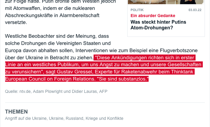 #Ukraine. Und warum die russische Drohung mit#Atomwaffen substanzlos ist.