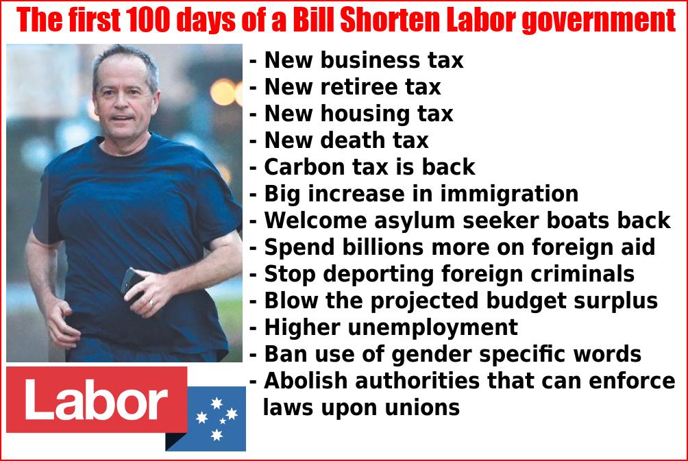 Today marks 100 days since the federal election on 18th May. What would have happened during the last 100 days if Bill Shorten & Labor had won the election?