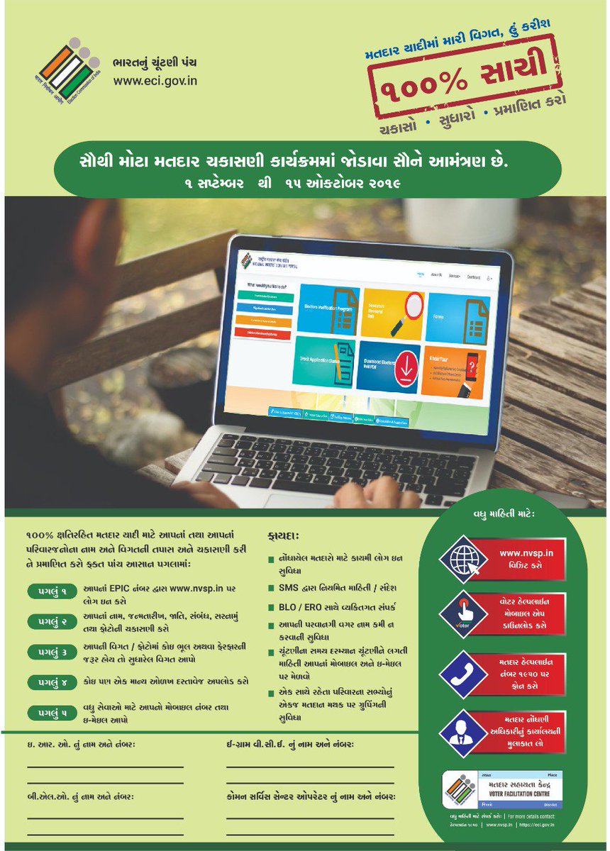 #Voterhelpline app, check it n make it 100% correct. Join Electoral verification program starting from 1 September to 15 October.#Correct#Verify#Authenticate@CEOGujarat@pkumarias@CollectorAhd@ECISVEEPpic.twitter.com/UO5VX7vZYc