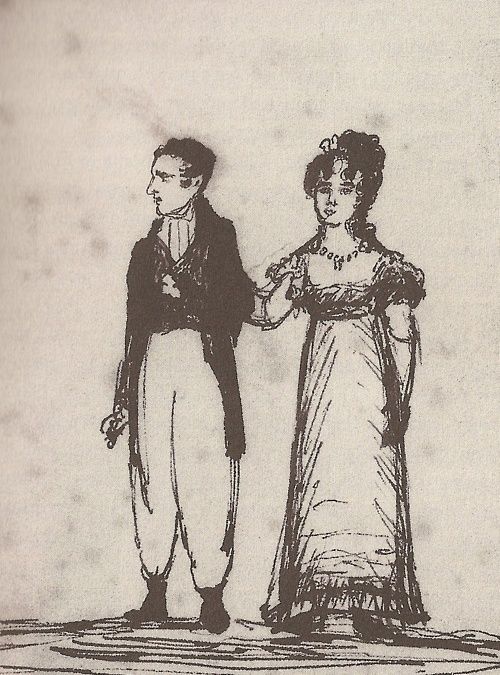 Today's picture: Lord Byron and his bride, Annabella, sketched by his former mistress Caroline Lamb