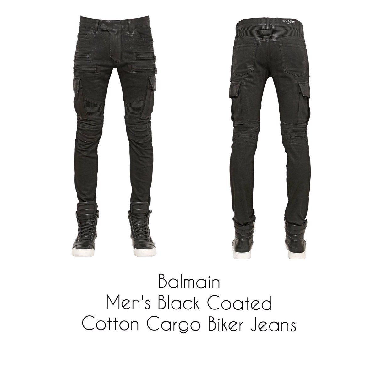 : #Balmain Black Coated Cotton Cargo Biker Jeans pic.twitter.com/BAmaLmCeny