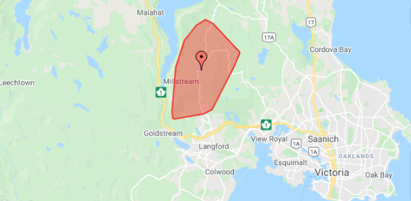 #BChydro outage North of#Langford - East of TRANS CAN HWY, West of WOODRIDGE PL, North of MILLSTREAM RD, South of ROSS DURRANCE RD affecting around 1500 customers. Currently under investigation.pic.twitter.com/Qmnu5fmZbi