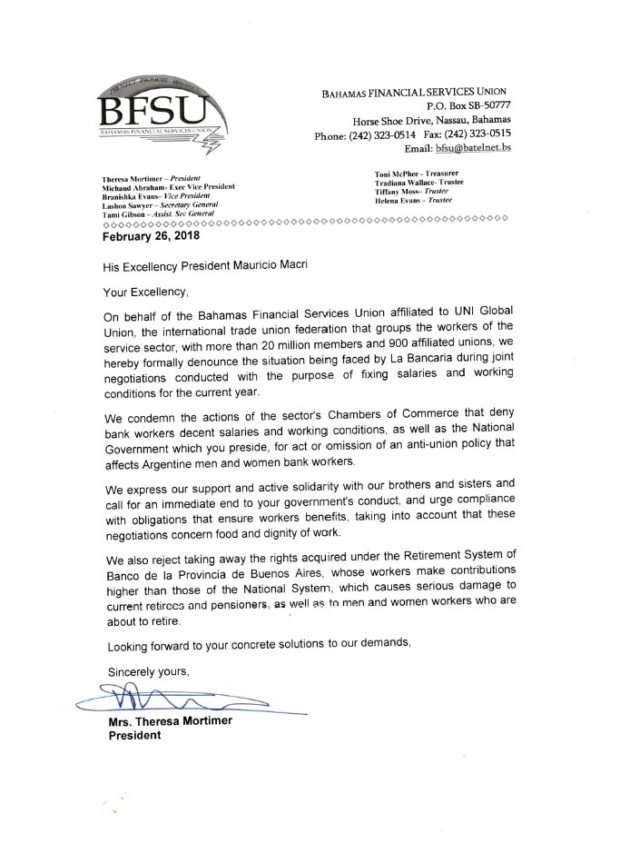 @mauriciomacri our caribbean affiliates#BFSU &#GTAWU send their solidarity and support to La Bancaria#Argentina@SergioOPalazzo@marcio_monzane@guimaffeo@soybancario@labancariasbapic.twitter.com/IDlM7Oixel