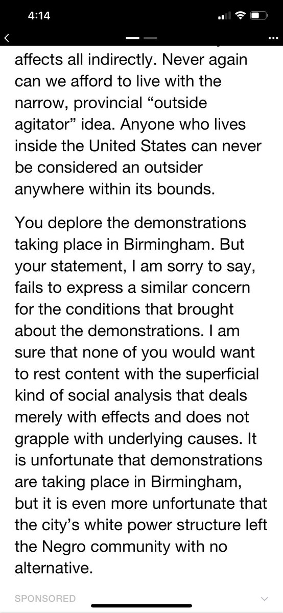 #BHMChallenge2020 Read “Letter From a Birmingham Jail”#SundayThoughts#WeAreTeachers#NotEveryoneKnowsThisButpic.twitter.com/GA5AjAucPu