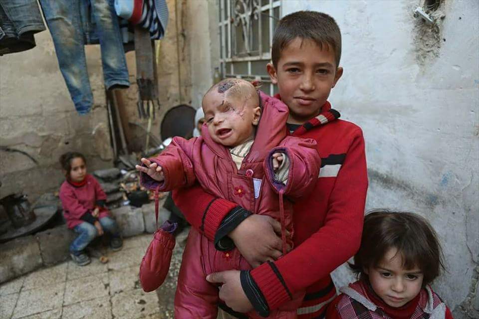 #SolidarityWithKarim Karim was with his mother at a market in Eastern Ghouta when airstrikes were launched on the busy street. Karim lost his mother and his eye. His skull was partially crushed.#SolidarityWithKarim#BabyKarim pic.twitter.com/SoWpUf2x4o