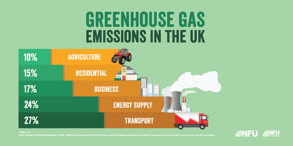 Carbon emissions for agriculture are only 10% of UK greenhouse gas emissions