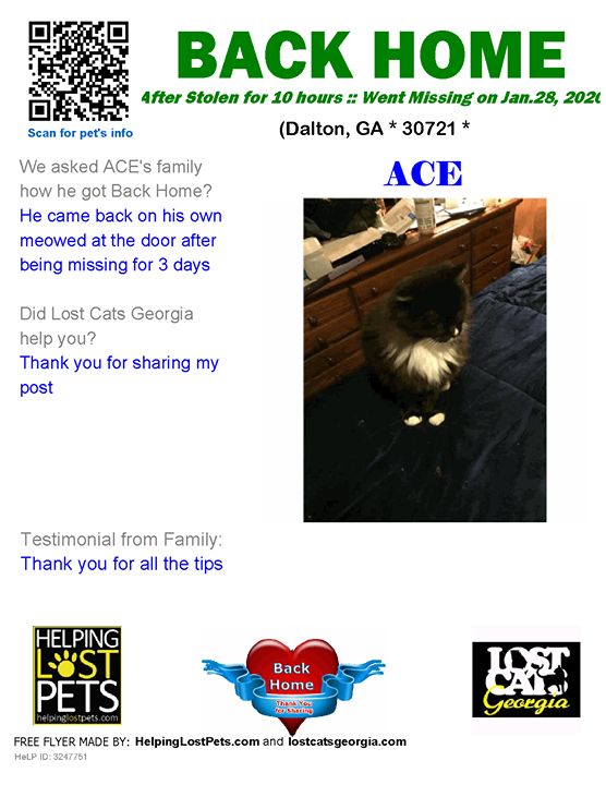 #BACKHOME We are so happy Ace is back home after 3 days!!! He came back on his own meowed at the door after being missing for 3 days!! Welcome Home Ace!!! pic.twitter.com/y3zuqUkGk5